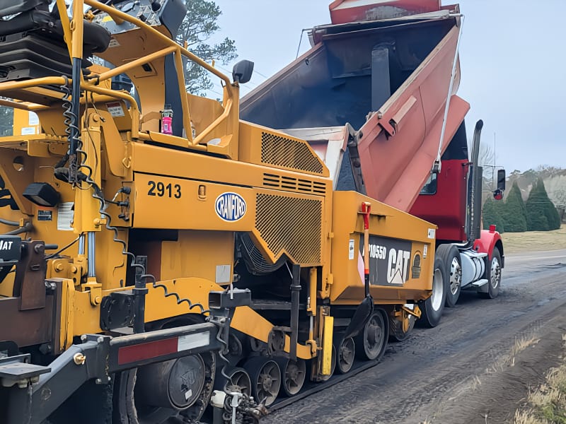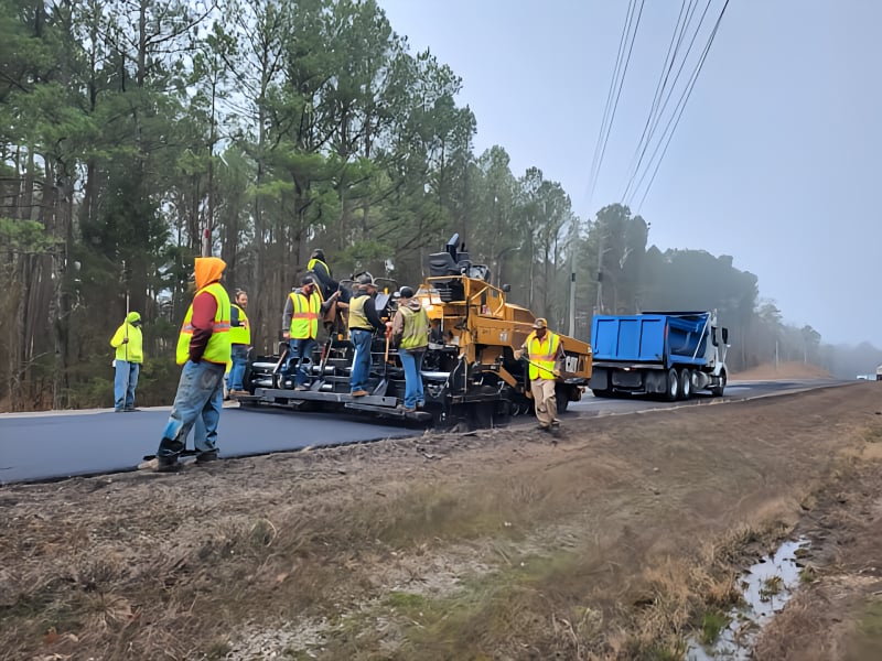 Featured image: Trucks delivering asphalt to the DeSoto Road Project.