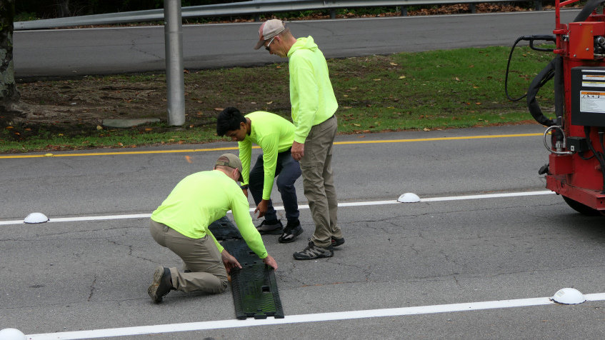To make the rumble strips more visible to drivers, yellow reflective paint will be painted in front of them.