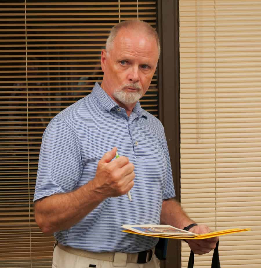 Using personal resources, Trails Committee Chair Buzz (James) Carpenter presented the departing, much-loved manager with photos representing Ginger’s time working in the Village.